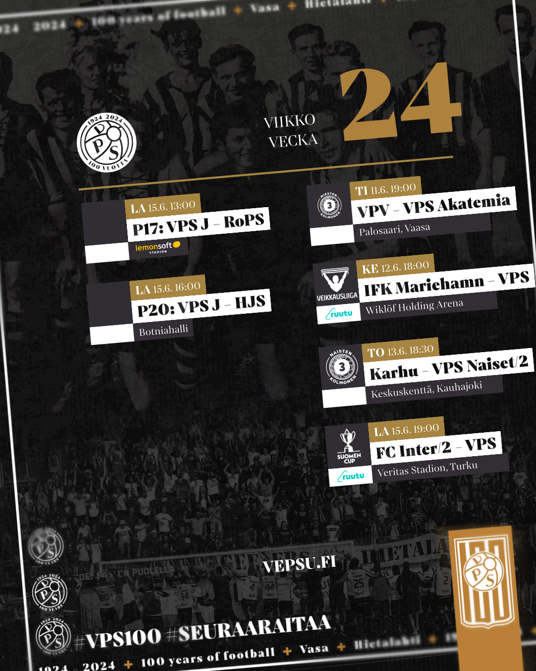 VPS hyppää takaisin sorvin ääreen viikolla 24, kun miesten edustusjoukkue, naisten edustusjoukkue ja akatemiajoukkue pääsevät irti omissa sarjoissaan.