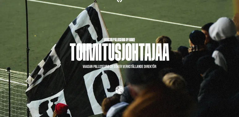 Vaasan Palloseura Oy (VPS) etsii innostavaa ja kunnianhimoista toimitusjohtajaa viemään yhtä Suomen perinteisimmistä jalkapalloseuroista uudelle menestyksen aikakaudelle! VPS on Vaasan alueen näkyvä urheilutoimija, jonka miesten, naisten ja akatemiajoukkueet kilpailevat valtakunnallisella huipputasolla. Nyt sinulla on ainutlaatuinen mahdollisuus olla mukana luomassa tulevaisuuden menestystarinaa.