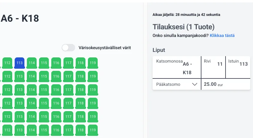 Voucherin vaihtaminen pääsylipuksi onnistuu helposti nettikaupassa. Siirry kauppaan, valitse matsi jota haluat tulla seuraamaan ja valitse paikkasi katsomokartasta. Paikan valitsemisen jälkeen syötä voucherissa oleva koodi klikkaamalla “Onko sinulla kampanjakoodi? Klikkaa tästä.” kohdasta.