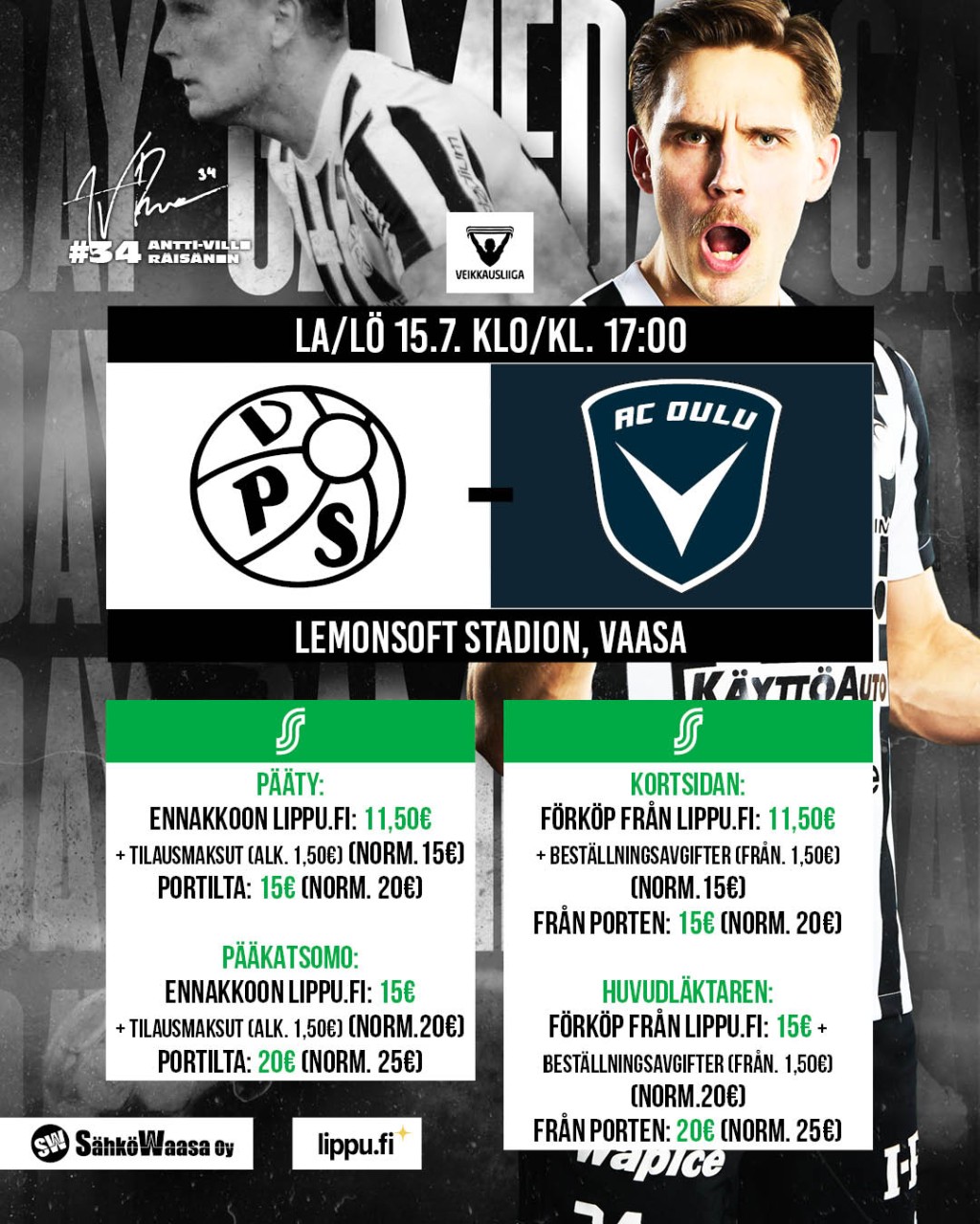 VPS pyrkii jatkamaan voitoista heinäkuutaan, kun joukkueen vieraaksi saapuu jo tutuksi vastustajaksi muodostunut AC Oulu. Kyseessä on joukkueiden neljäs kohtaaminen tänä vuonna, josta VPS hakee ensimmäistä voittoaan Oulusta.