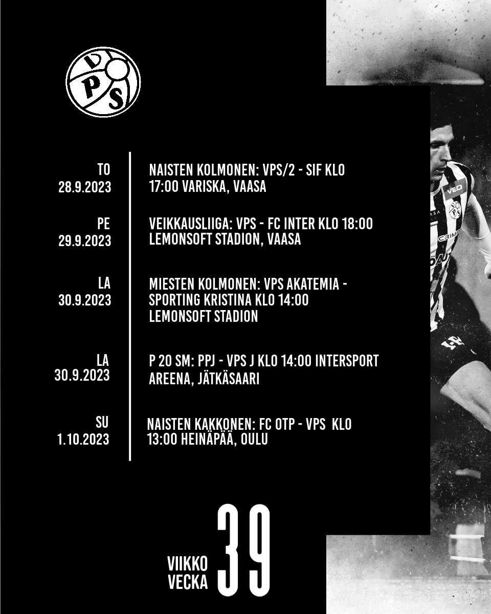 - 29.9. | VPS – FC Inter | 18:00 | Lemonsoft Stadion, Vaasa | Veikkausliiga